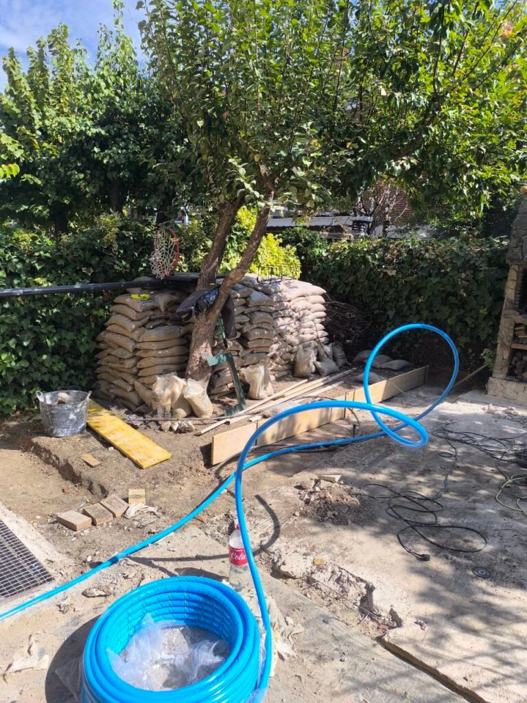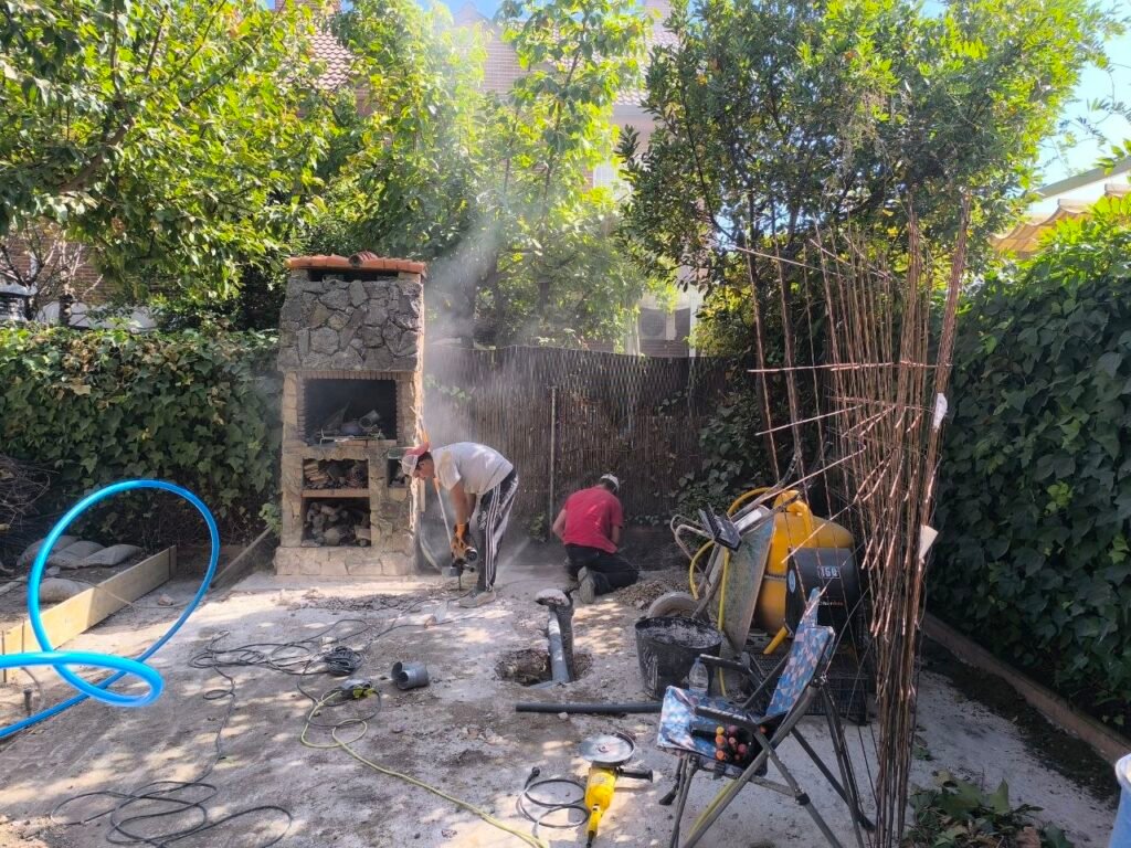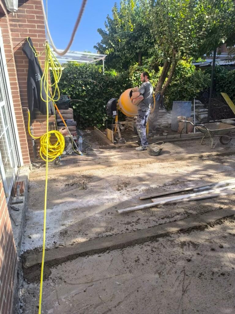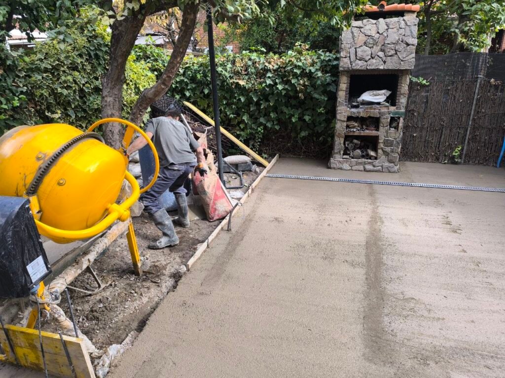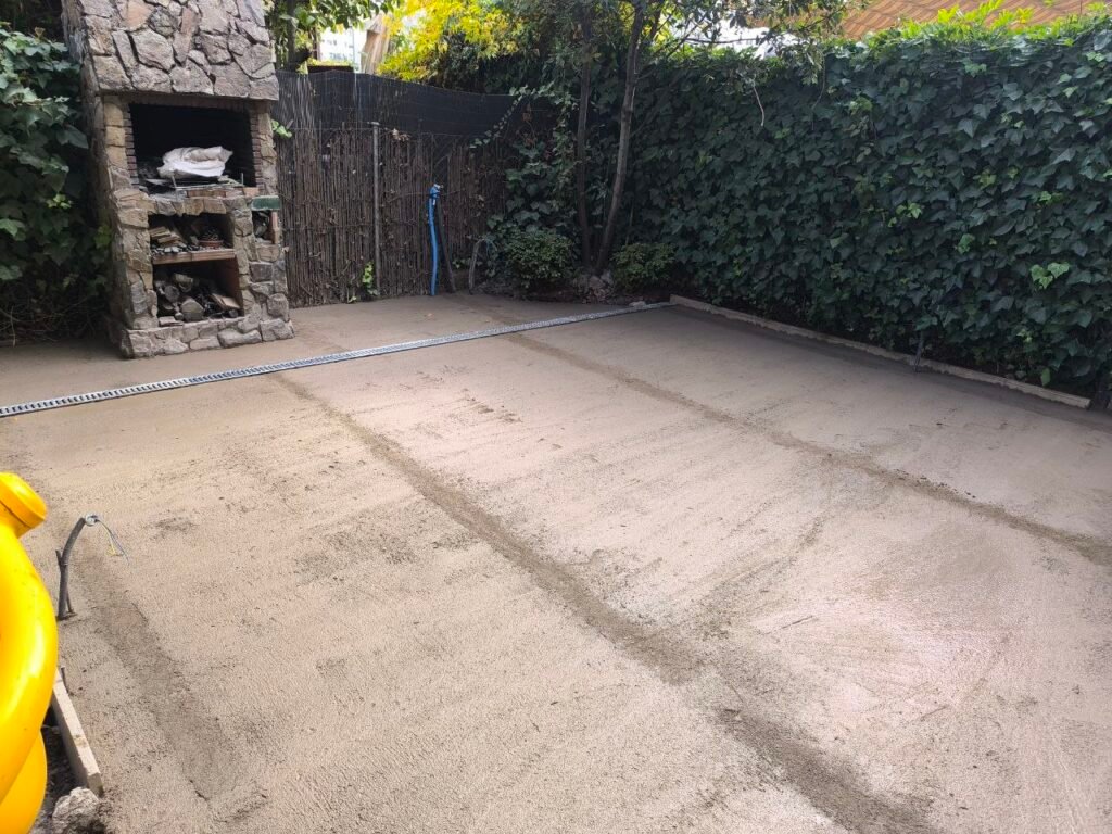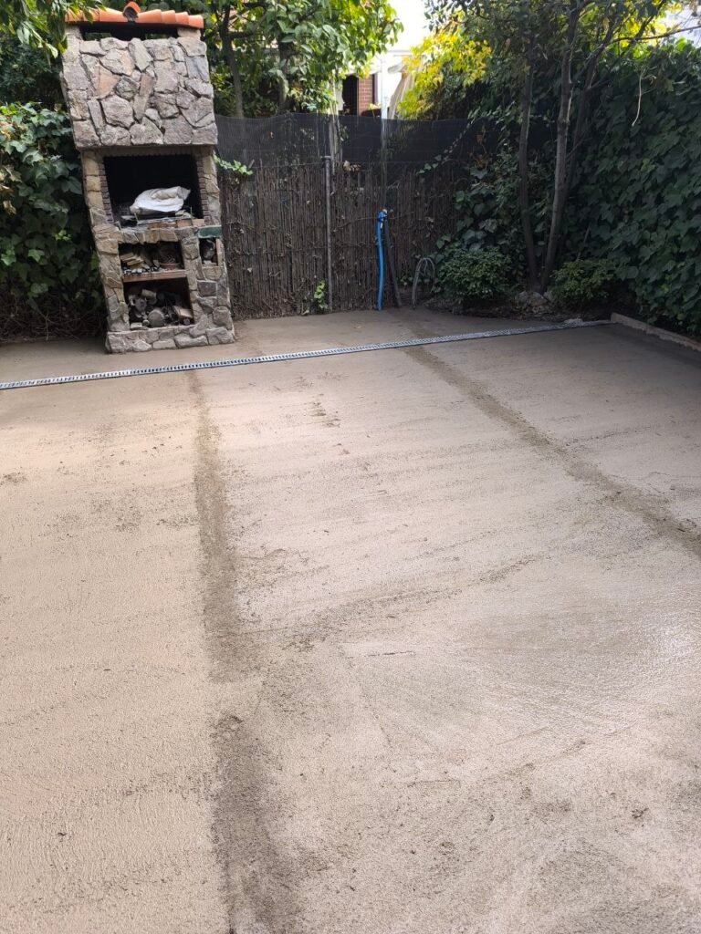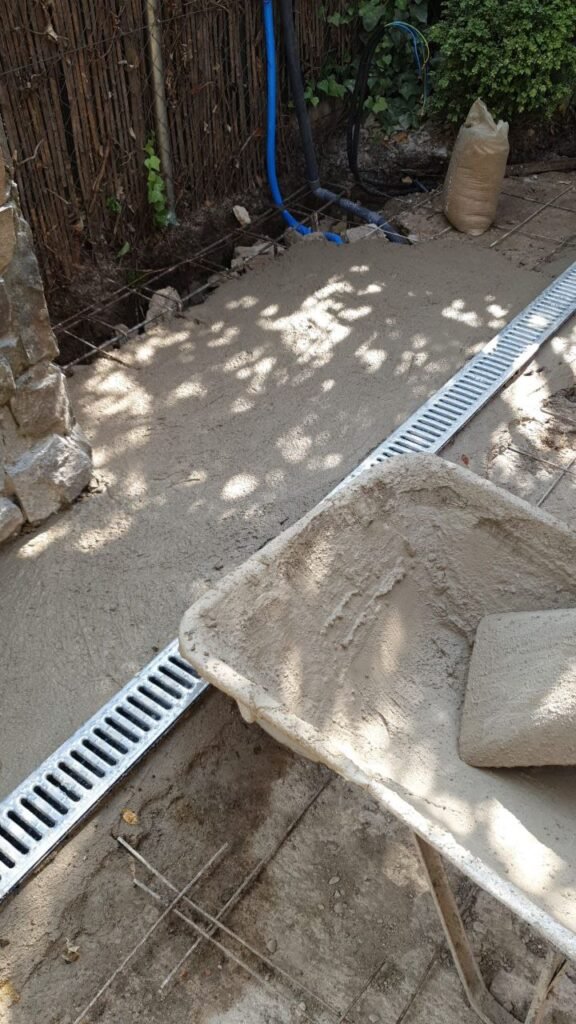 Luego prepara terreno para realizar la solera de hormigón, y antes de hacer la solera pasar instalaciones de agua y electricidad y colocar una canaleta para recoger de aguas fluviales.