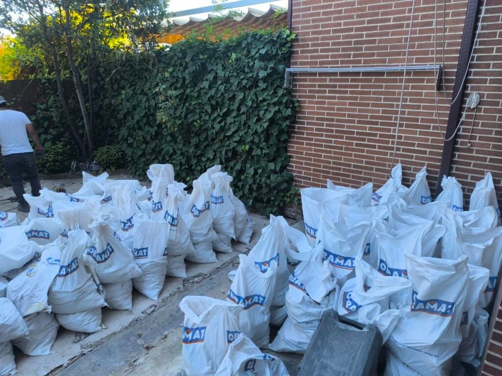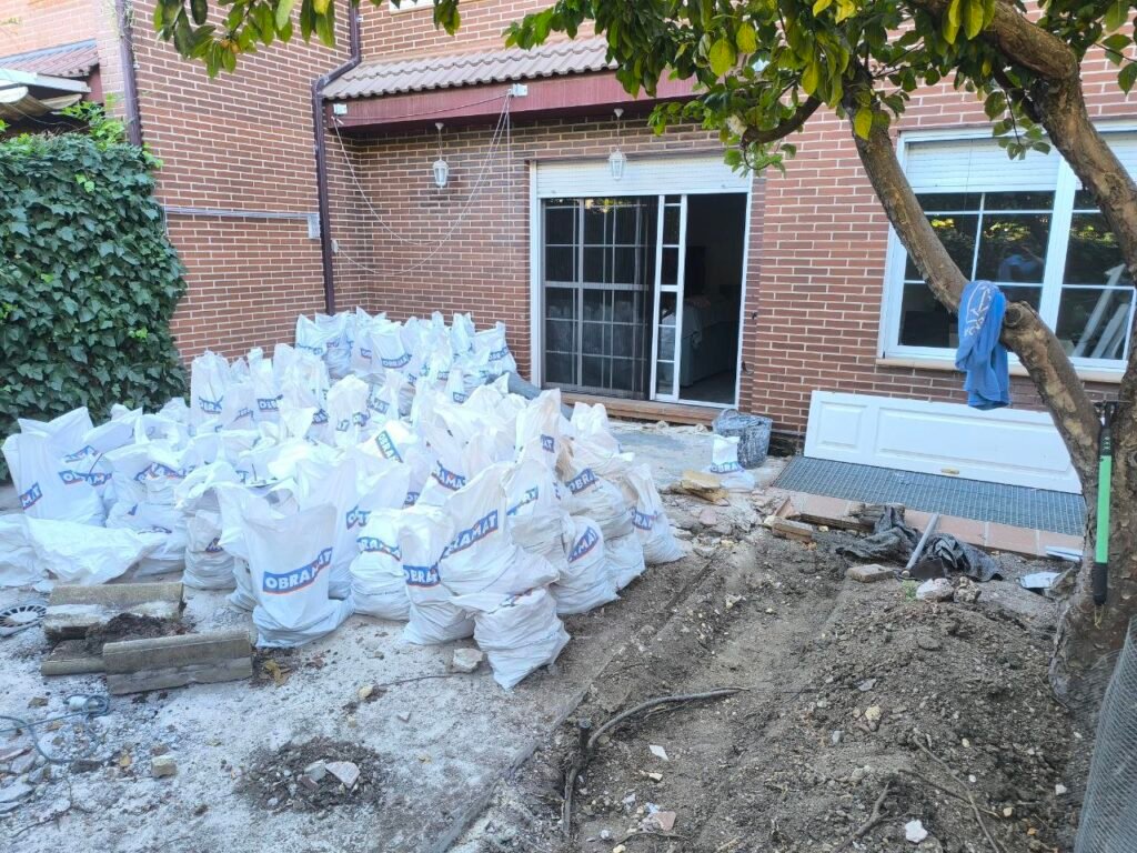 En el primer lugar faltaria desescombrar todo el patio y cargar todo el escombro en sacas y transportarlo a contenedor.